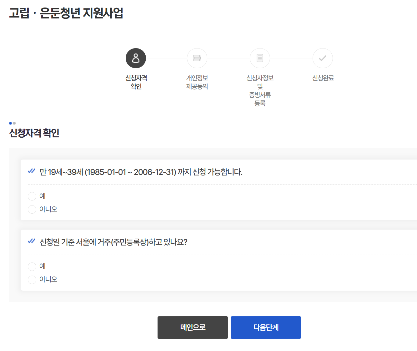 - 서울시 거주 만 19~39세 고립은둔청년 및 가족(1985년 1월 1일 ~ 2006년 12월 31일 출생)