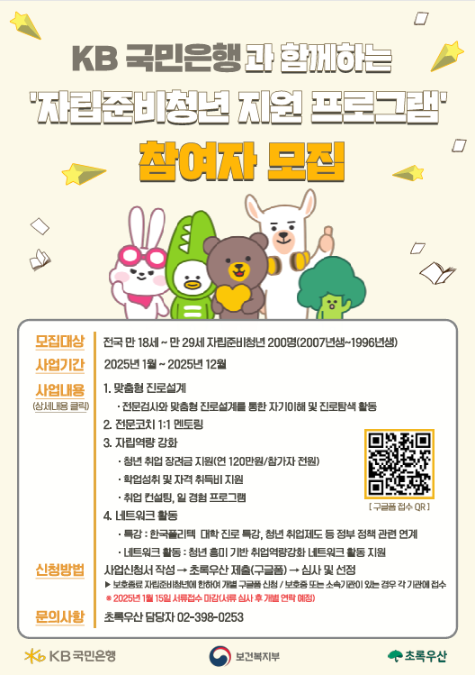 KB 국민은행 자립준비청년 지원 프로그램은 자기 이해를 기반으로 미래 비전을 설계하고, 진로 역량을 강화함으로써 경제적인 자립을 도모하는 프로그램입니다.